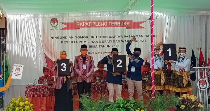 Ketiga Paslon Bupati Bima setelah melakukan pengundian nomor urut sama-sama mentaati protokol Covid-19 tidak mengerahkan massa sebagaimana yang ditekankan oleh KPUD Kabupaten Bima sebelumnya.
