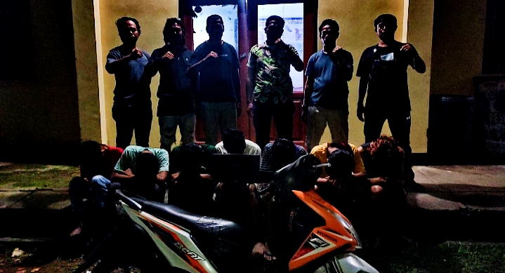 Bimantika.net Tim Opsnal Brimob NTB Mengamankan 7 Orang Terduga pelaku Pencurian beserta barang bukti 1 Unit TV Komputer Warna Hitam.