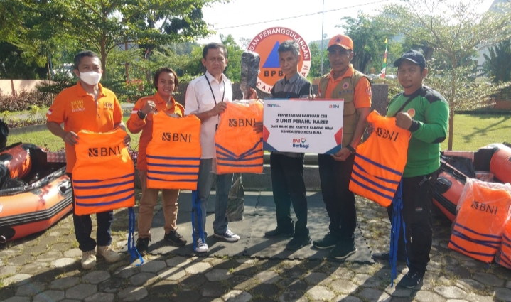 Bantuan BNI tersebut Berupa 2 Unit Perahu Karet dan Lokasi Acara Kantor BPBD Kota Bima.