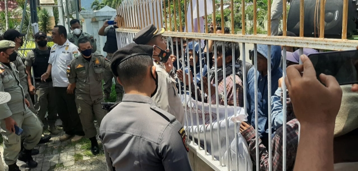 “Karena protokol kesehatan maka kita lakukan pendekatan pada para pengunjuk rasa untuk diwakili beberapa orang, dan mereka pun mengerti atas usulan saya” ujar Wakapolres.