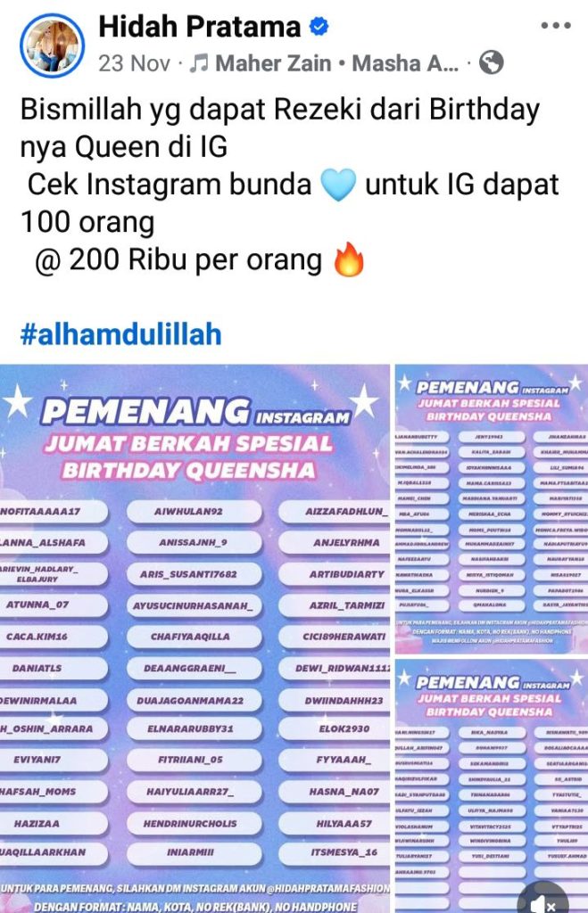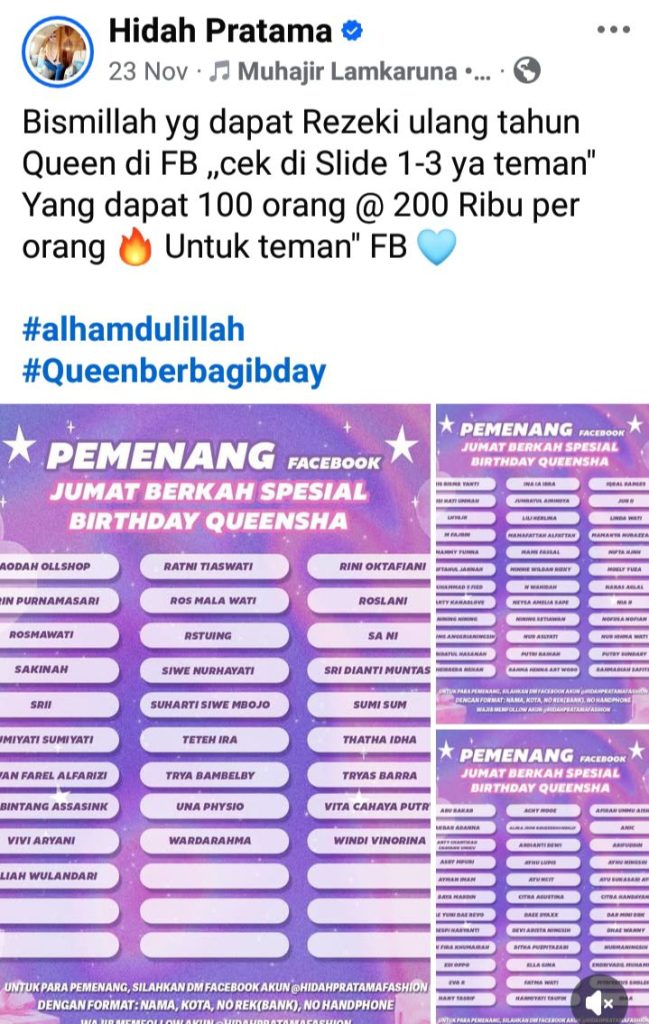 Kerap setiap momentum melakukan kuis yang hadiahnya untuk ratusan orang dengan nominal ratusan ribu setiap orang menjadikan indikasi kuat bahwa saling berbagi sangat penting baginya dalam menjalani hidup dan kehidupan yang sementara ini.