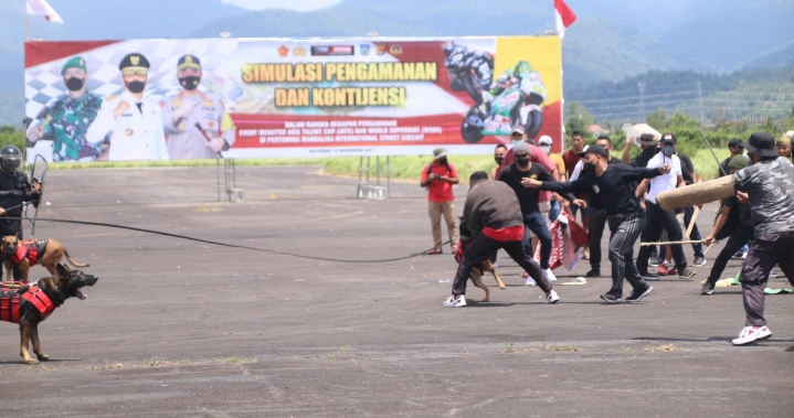 Selain menampilkan simulasi penyelamatan sandera saat bus antar jemput pengunjung ke Sirkuit Mandalika dibajak, disuguhkan pula simulasi penanganan aksi demonstrasi segerombolan massa (warga lokal) yang mendatangi Kantor PT. ITDC, karena tersulut provokasi pihak tidak bertanggung jawab. Dimana dalam simulasi ini ditampilkan kepiawaian Tim Gabungan dalam mengawal, mengurai, dan membubarkan massa aksi.
