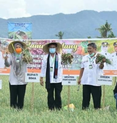 “Kami bersyukur kepada kebijakan Bapak Presiden Jokowi dan Menteri Pertanian Syahrul Yasin Limpo sehingga harga bawang yang kami produksi melonjak dari harga sebelumnya dan kesejahteraan petani bawang meningkat,” demikian Ungkap Bupati Bima IDP diloksasi panen raya bawang merah bersama Menteri Pertanian Syahrul Yasin Limpo di Desa Risa Kecamatan Woha Kabupaten Bima, Kamis (28/5/2020).