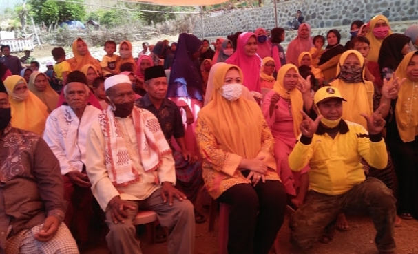 Selain menyerahkan bantuan uang tunai, juga dalam kesempatan tersebut diserahkan bantuan alat masak masing-masing PKK dan amplifier untuk masing-masing dusun di tiga desa. “kami berterimakasih pada Umi Dinda” ujar salah seorang Ibu PKK usai menerima bantuan.