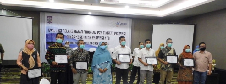 Rifai memaparkan, piagam penghargaan diserahkan oleh Kadis Kesehatan Provinsi NTB dr. Nurhandini Eka Dewi, Sp.A, MPH pada Rakontek Evaluasi Program bidang Pencegahan dan Pengendalian Penyakit (P2P) yang diselenggarakan oleh Dikes Propinsi NTB tanggal 26 – 29 Oktober 2020 di Hotel Lombok Astoria.