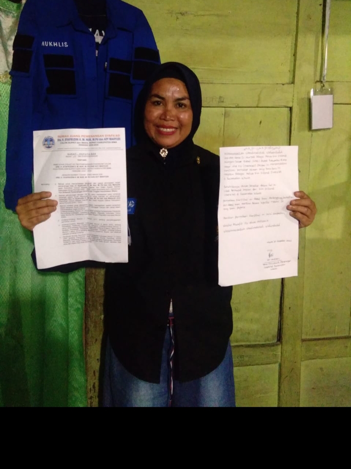 Sri Nurhayati Ketua Srikandi Syafaad Kecamatan Wawo Perlihatkan SK nya secara Resmi