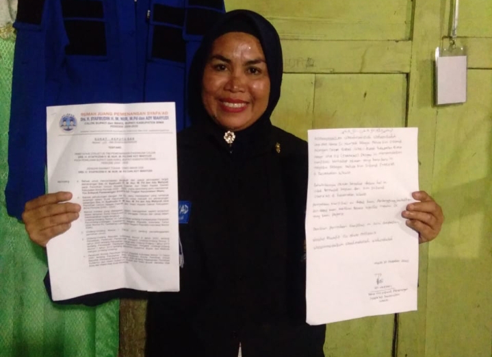 Masih di katakannya bahwa kalau memang dia sebagai ketua ataupun masuk dalam struktur tim Srikandi kec wawo mana SK yang di berikan oleh Paslon Drs. H. Syafruddin H. Nur Mpd dan Ady Mahyudi atau di singkat Syafaad.