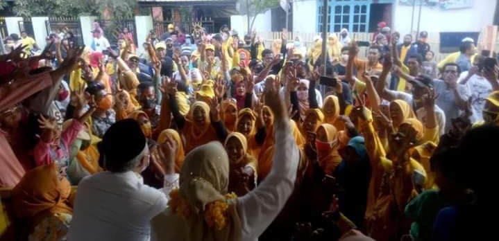 “Alhamdulillah jalan sudah di hotmix, antena pembangunan WC dan kamar mandi sudah dinikmati oleh warga kami” ujarnya disambut histeris oleh warga lainnya dengan yel-yel Lanjutkan dua periode Coblos Nomor 3.