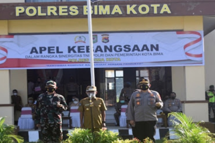 Apel digelar tiga komponen besar daerah, TNI-Polri dan pemerintah daerah. Saat itu HM Lutfi didampingi Kapolres Bima Kota dan Dandim 1608 Bima.