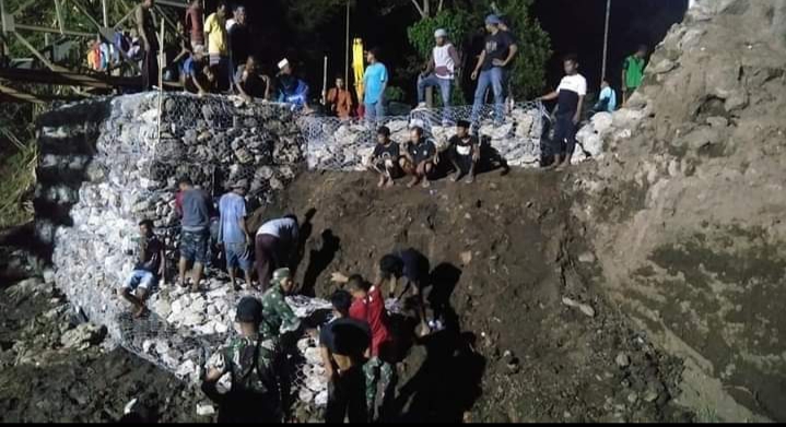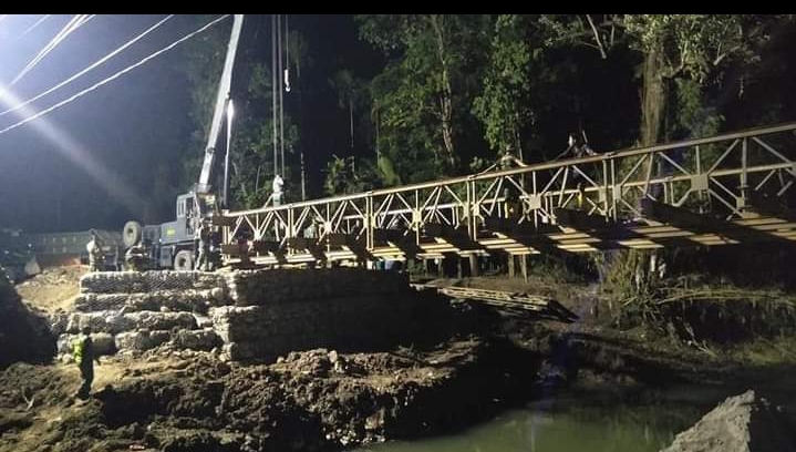“Pada hari ini kami telah menyelesaikan pembuatan pangkal jembatan, dan akan dilanjutkan dengan pemasangan Jembatan Acrow Panel. Diharapkan dalam waktu dua ke depan, seluruh badan jembatan telah selesai dan sudah dapat dilalui kendaraan roda empat maupun roda dua,” ujar Letkol Czi Alid Setiawan, Danyonzikon 13/KE.