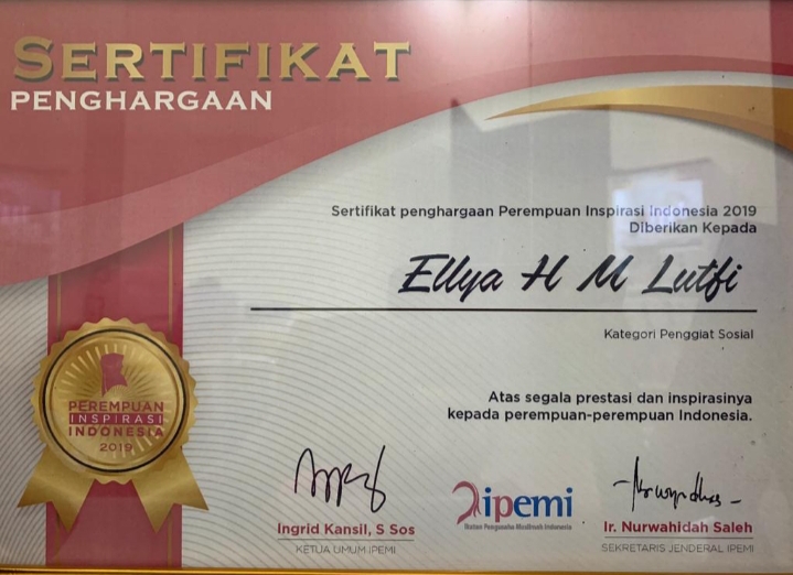 Piagam Penghargaan yang diraih oleh Hj. Ellya Alwaini sebagai bentuk Kesuksesannya sebagai Pengusaha Handal di Kota Bima