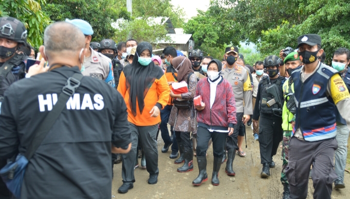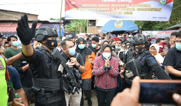 Mensos RI hadir, dalam rangka Kunjungan Kerja (Kunker) untuk meninjau korban terdampak bencana alam banjir Bandang di wilayah Kabupaten Bima, pada Jum,at 2 April 2021, beberapa waktu lalu.