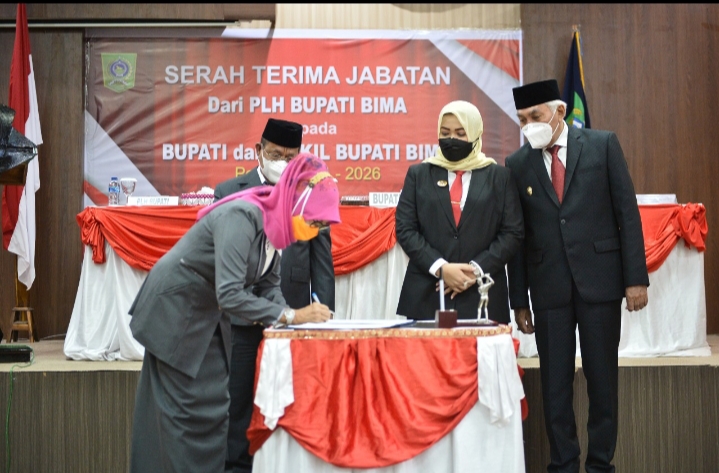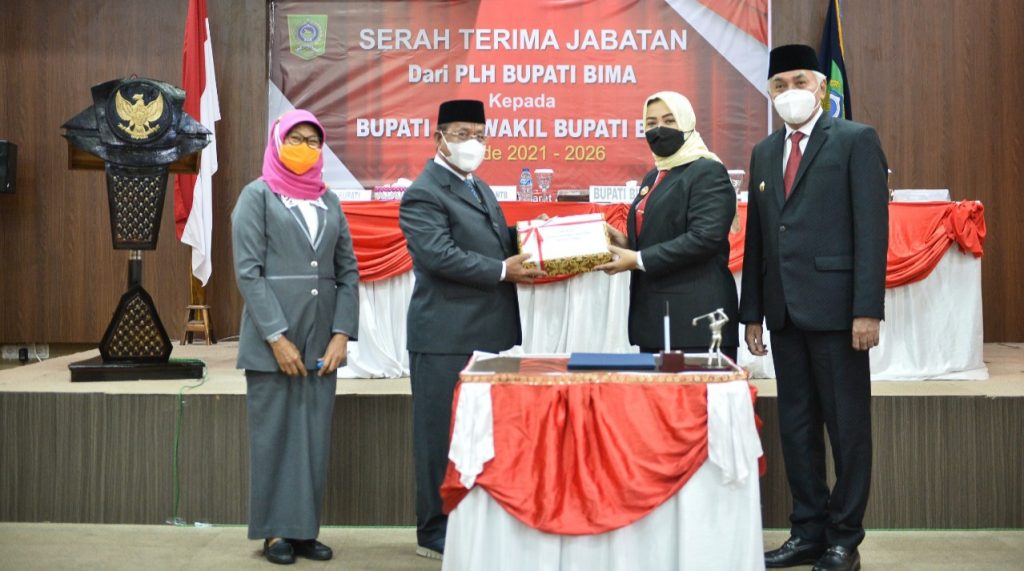 Bimantika.net Pemerintah Kabupaten Bima (Pemkab Bima) selenggarakan kegiatan serah terima jabatan dari Plh Bupati Bima Drs. H Taufik, Hak, M. Si, ke Bupati Bima Hj. Indah Dhamayanti Putri, SE dan Wakil Bupati Bima Drs. H Dahlan M. Noer, M. Pd, (IDP-Dahlan) Bupati Bima dan Wakil Bupati Bima terpilih hasil Pilkada Desember 2020.