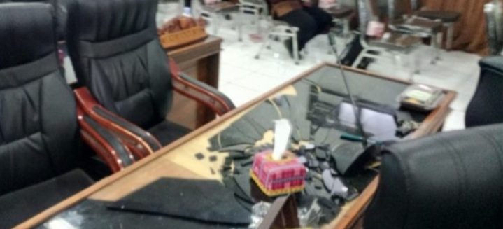 Kaca Meja yang dipecahkan oleh oknum Anggota DPRD Kabupaten Bima
