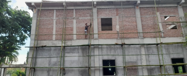 Hasil Investigasi langsung media Online Bimantika Selasa 9 November 2021 Bahwa para pekerja yang sedang memasang peralatan untuk pengerjaan plesteran bagian luar gedung tersebut nampak tidak memakai alat pengaman, dan sepertinya dibiarkan bekerja tanpa pengaman yang memadai.