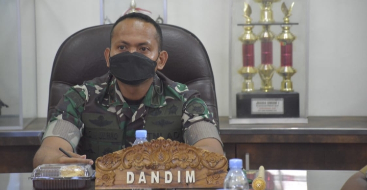 Bimantika.net Komandan Kodim 1608/Bima Letnan Kolonel Inf M.Zia Ulhaq, S.Sos mengikuti Video Conference (Vicon) terkait penanganan Covid-19 varian Omicron yang disampaikan langsung oleh Presiden RI Ir. H. Joko Widodo di Ruang Vidcon Walikota Bima pada Senin (07/02).