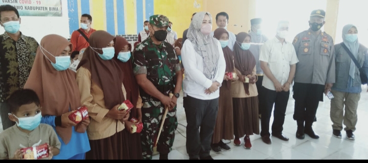 Sambut hangat Hj. Indah Damayanti Putri, SE. saat tinjau Vaksinasi mengatakan Alhamdulillah kita bisa hadir di tempat pelaksanaan vaksinasi ini untuk mendukung pelaksanaan vaksin, yang menjadi sutradara pelaksanaan vaksinasi sekarang adalah pak Dandim 1608/Bima adalah putra asli Bima.