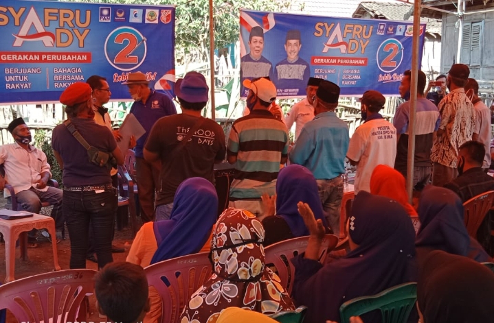 Paslon Syafaad menyisir dari arah timur ambalawi desa Mawu di sambut meriah oleh masyarakat Ambalawi, pasangan syafru – Ady (Syafaad) melakukan silaturahmi sambil membagikan 1500 (seribu lima ratus ) lembar masker kepada masyarakat Ambalawi.