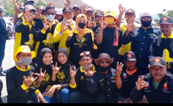 Para Ibu-ibu pendukung IDP-Dahlan histeris meneriakkan Lanjutkan Dua Periode. “Kami Cinta Umi Dinda, Kami Menangkan Umi Dinda” ungkap Gender IDP Kecamatan Bolo.
