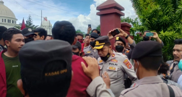 Pengamanan aksi unjuk rasa dari IMM oleh pihak Polres Bima Kota berjalan penuh Humanis walau sedikit ada riak-riak dalam aksi tersebut.
