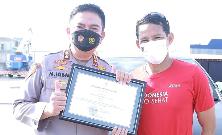 Bimantika.net LOMBOK TENGAH – Menteri Pariwisata dan Ekonomi Kreatif (Menparekraf) Republik Indonesia (RI) Sandiaga Salahudin Uno dan ITDC beri penghargaaan untuk Kepala Kepolisian Daerah Nusa Tenggara Barat (Kapolda NTB) Irjen Pol Mohammad Iqbal S.I.K MH beserta stakeholder lainnya atas peran aktifnya menyelesaikan lahan di KEK Mandalika, sehingga pembangunan Pertamina Mandalika International Street Circuit berjalan lancar.