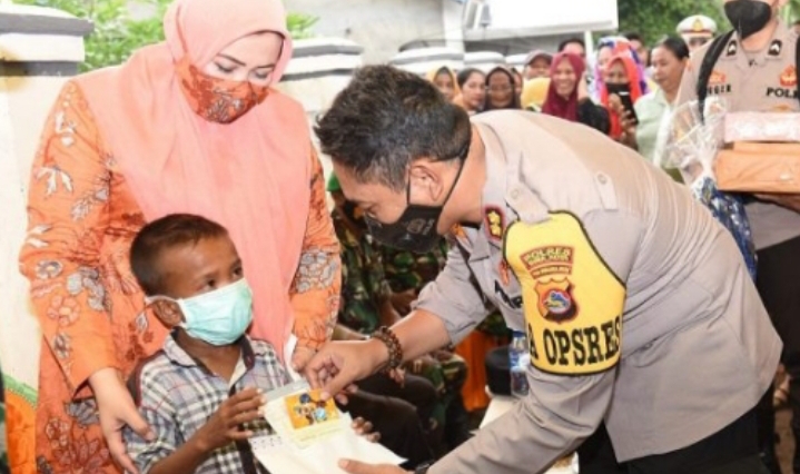 Kapolres Bima Kota menyantuni bocah Muhammad berupa uang untuk biaya sekolah dalam bentuk Tabanas atas nama bocah Muhammad.