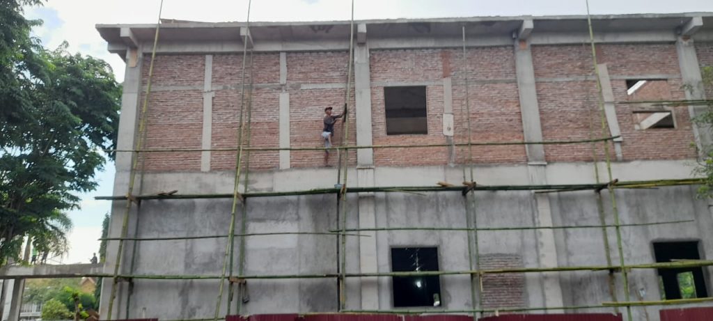 Hasil Investigasi langsung media Online Bimantika Selasa 9 November 2021 Bahwa para pekerja yang sedang memasang peralatan untuk pengerjaan plesteran bagian luar gedung tersebut nampak tidak memakai alat pengaman, dan sepertinya dibiarkan bekerja tanpa pengaman yang memadai.