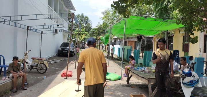 Di Kelurahan Na’e Kecamatan Rasana’E Barat Kota Bima membangun Pasar Ramadhan samping Kantor Kelurahan.