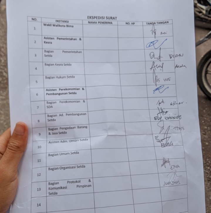 “Wakil Walikota Kami Undang di Acara Gerakan Reboisasi, Karena Ini Gerakan Pemkot Bima, Ini Tanda terima Suratnya oleh ADC Administrasi Beliau di Ruang Kerja Wakil Begini Tanda terima Suratnya oleh ADC Administrasi Beliau di Ruang Kerja Wakil Bang” ujar Sarif Rustaman sembari perlihatkan tanda terima surat oleh Adc Wakil Walikota. (***)