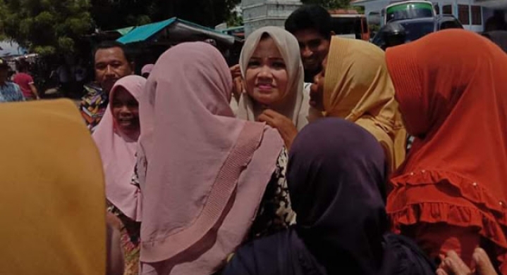 “Hanya sebagian kecil saja yang menolak Umi Dinda, Kami sebahagian besarnya siap memenangkan Umi Dinda dua Periode” ungkap ibu ibu Warga setempat sambil memeluk IDP (BNN_02)