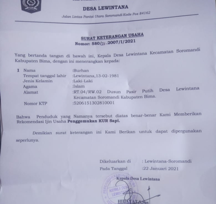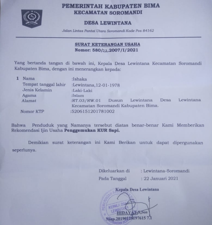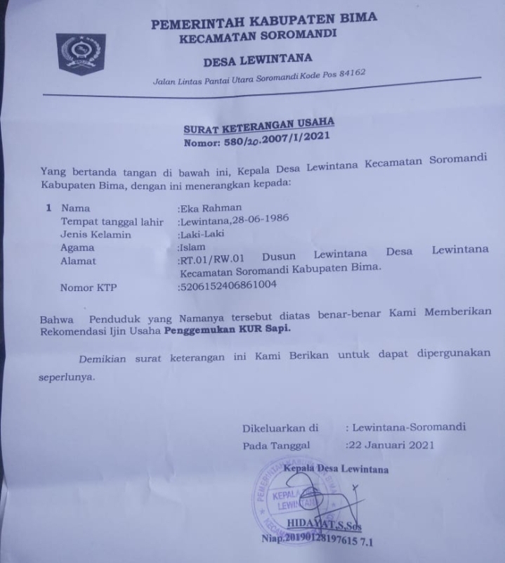 “Tiga masyarakat penerima dana KUR Penggemukan Sapi masing-masing inisial ER, IS dan BR. Ketiganya merupakan warga asal Kecamatan Soromandi Kabupaten Bima, mereka tidak menerima uangnya tapi uangnya sudah cair di salah satu Bank di Bima” jelas Dalbo.