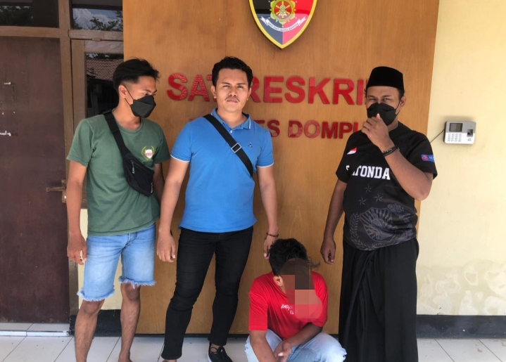 Katim Puma Polres Dompu IPDA Bayoe Wicaksono S.Tr.K, bersama anggotanya mengamankan pelaku setelah mendapat informasi bahwa pelaku bersembunyi di rumah kakeknya yang berlokasi di Lingkungan Kandai Satu, Kelurahan Kandai Satu, Kecamatan Dompu, Kabupaten Dompu.