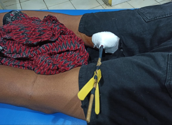 Pelaku melakukan penganiayaan dengan memanah korban sehingga korban mengalami luka tusuk pada bagian paha kiri, belum diketahui apa motif pelaku melakukan tindakan tersebut.