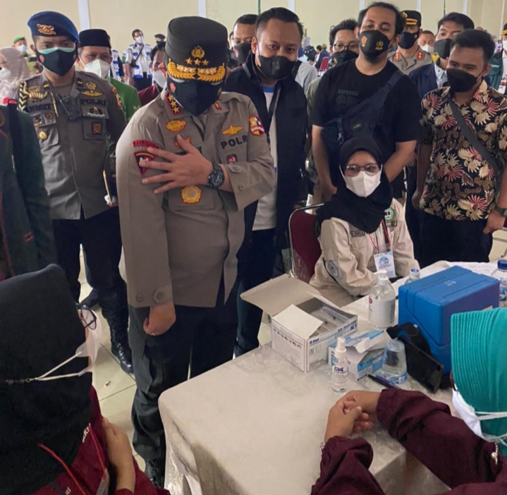 Turut hadir, Wakapolri Komjen Gatot Eddy Pramono yang melakukan kunjungan ke STKIP Muhammadiyah Bogor. Setibanya di lokasi, Dia langsung mengecek kegiatan vaksinasi.