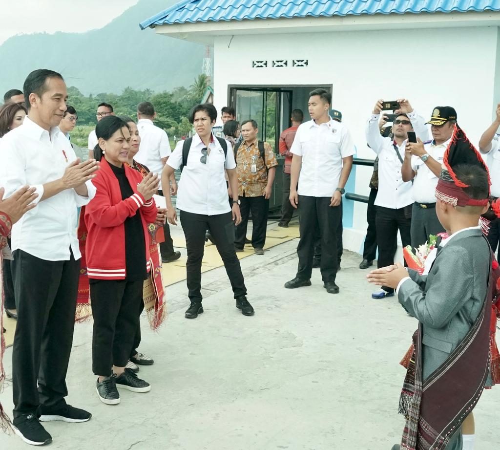 Setelah acara penyerahan sertifikat tanah untuk rakyat, Presiden dibawah hujan deras sedikit berlari meninggalkan lokasi sertifikat untuk meninjau Desa Adat dan kerajinan tenun ulos di Kampung Ulos Hutaraja, Desa Lumban Suhi Toruan, Kecamatan Pangururan, Kabupaten Samosir. (Bppresiden/litbangpdip)