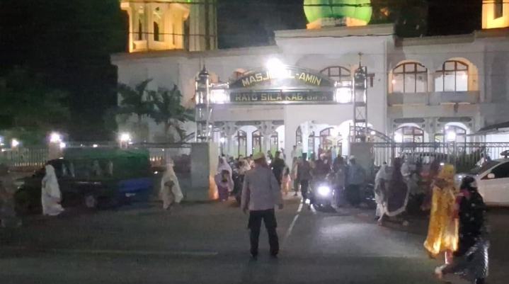 Bimantika.net -Anggota Polsek Bolo Polres Bima Polda NTB melaksanakan patroli pengamanan Sholat Taraweh bulan Ramadhan 1447 Hijriah tahun 2026 di Masjid Al Amin Desa Rato Kecamatan Bolo Kabupaten Bima.