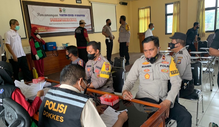 “Polisi menjadi orang pertama dalam pelaksanaan vaksinasi Booster Sama seperti pada vaksinasi dosis pertama dan dosis ketiga,”kata Kompol Mujahidin.