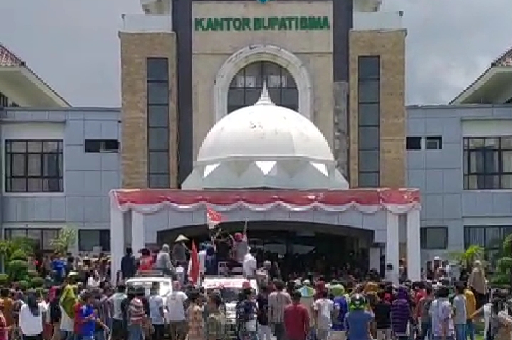 Sejumlah massa memasuki Kantor Pemda Bima, sehingga mengakibatkan ketakutan bagi para pegawai yang sedang bekerja dan lari berhamburan keluar halaman kantor.