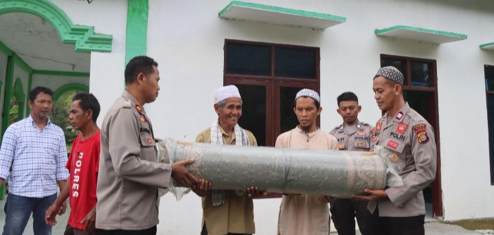 Bimantika.net -Memakmurkan Masjid dan meraih berkah di bulan suci ramadhan Satbinmas Polres Bima Kabupaten Polda NTB menyerahkan bantuan Sarana ibadah.