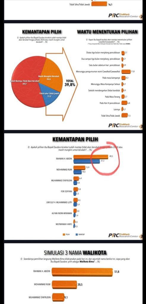 Artinya untuk survei lembaga survei PRC, Jangan berpegang pada elektabilitas. Tetapi hal terpenting ada pada KEMANTAPAN PILIH.