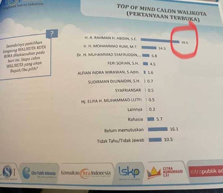 Siapakah calon walikota Bima yang saudara pilih pada pilkada 2024.