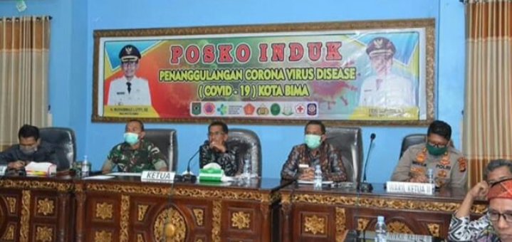 Video conference dilakukan di Posko Induk Tim Gugus Tugas Covid-19 Kota Bima bertempat di Aula Kantor Walikota Bima, pada hari Selasa 7 April 2020.