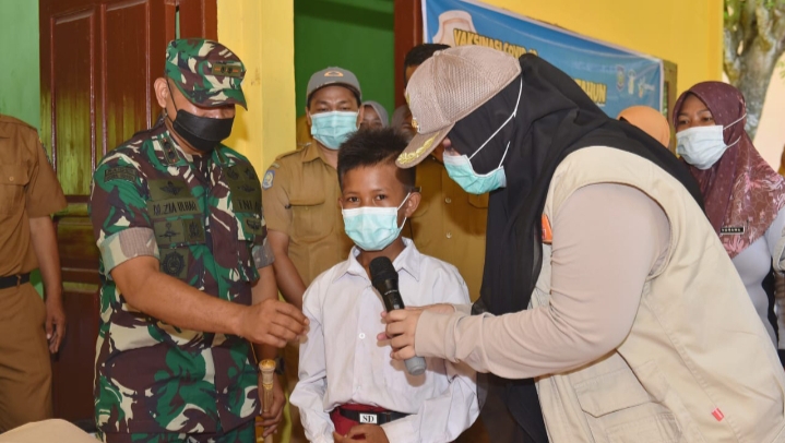 “Anak-anak tidak perlu takut vaksin dan setelah divaksin harus lebih banyak istirahat dan jangan terlalu banyak berlari istirahat Kalau ada keluhan seperti panas, batuk dan pilek agar disampaikan kepada para petugas supaya tidak dilakukan vaksin” ujar Bupati IDP.