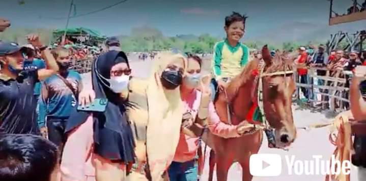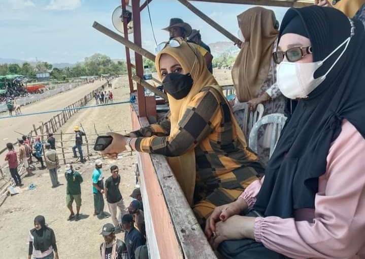 Saat Kuda bernama Putri Melayu masuk dalam gelanggang dengan riuhnya penonton tribun sorak sorai memberikan support pada kuda yang di miliki oleh Istri Walikota Bima H. Muhammad Lutfi, SE tersebut.