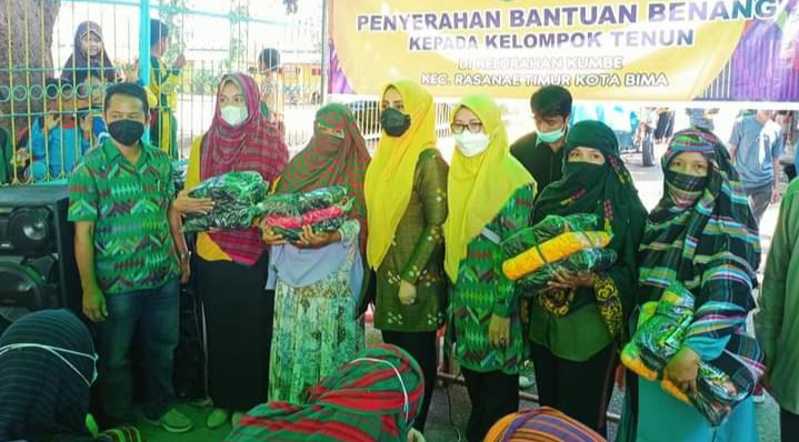 Umi Elly sapaan akrab istri Walikota Bima H. Muhammad Lutfi, SE (HML) ini turun menemui para pengrajin Dalam Rangka Acara Pembagian Benang Tenun kepada kelompok Tenun yang Ada di Kelurahan Kumbe Kota Bima.