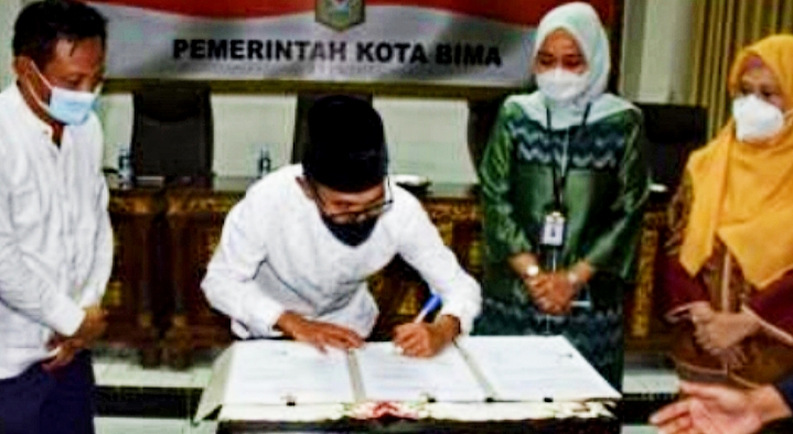 Bimantika.net Walikota Bima H. Muhammad Lutfi, SE (HML) teken surat pernyataan penerimaan serah terima Barang Milik Negara (BMN) berupa pengelolaan Sistem Penyediaan Air Minum (SPAM) terdampak bencana di Kelurahan Nungga dan Kelurahan Lelamase Kota Bima.